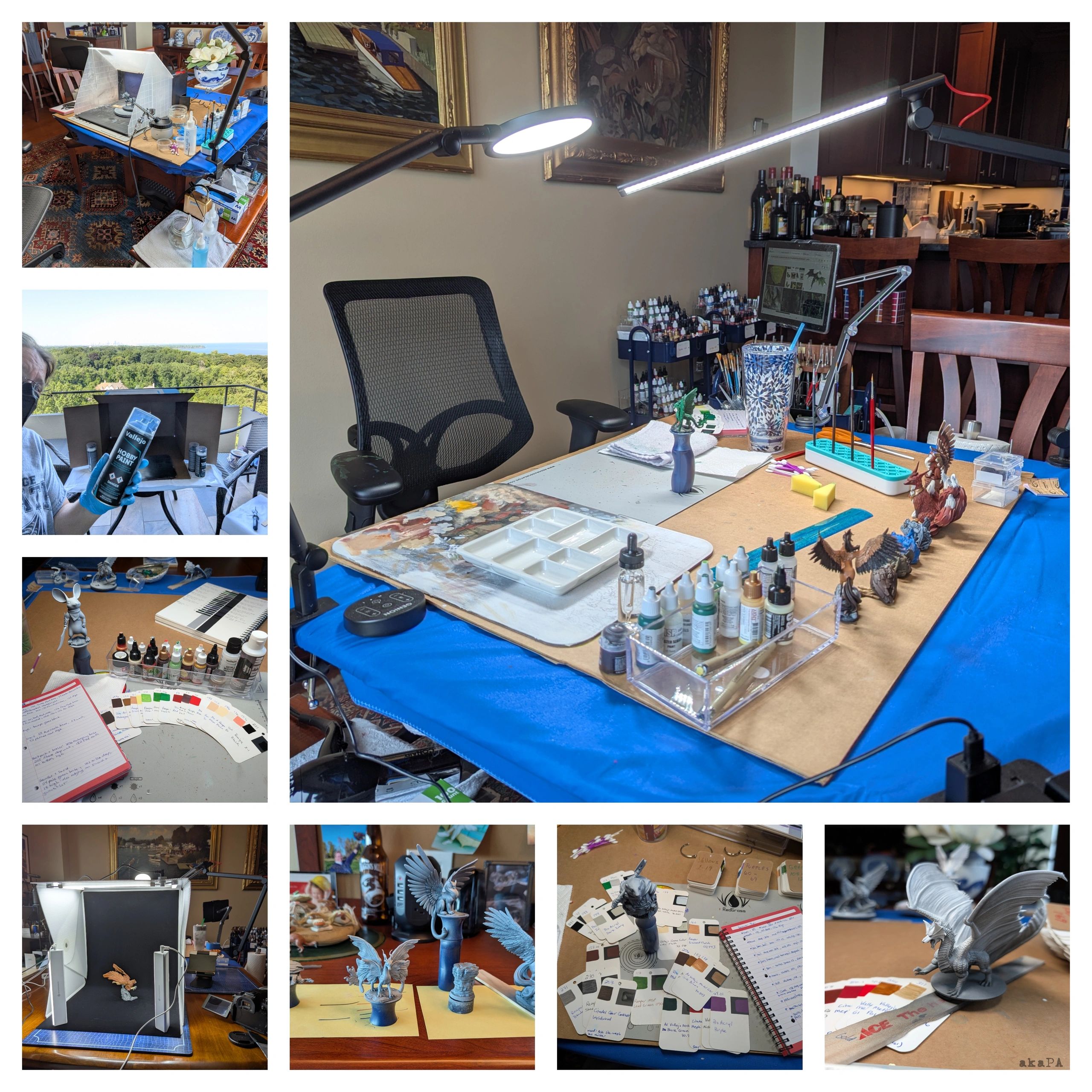 Starting in 2025, I decided to paint my own subjects (good figurines being thin on the ground, and it being easy to get unpainted 3D prints of fantastical creatures thanks to tabletop gamers). Little did I know what a rabbit hole I was sliding into... an entirely new creative hobby (Image: Dining room transformed)